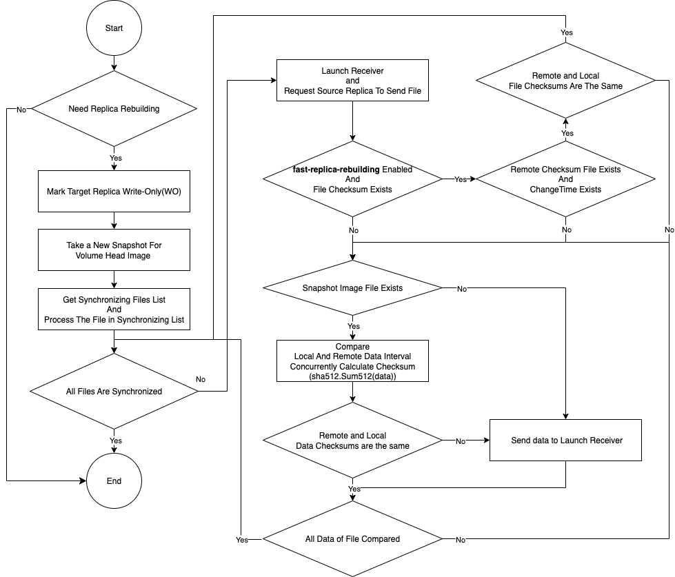 When Longhorn detects a failed or deleted replica, it automatically initiates a rebuilding process. This document outlines the replica rebuilding workflow for v1 data engine, including full, delta, and fast rebuilding methods. It also explains the limitations associated with each method.
