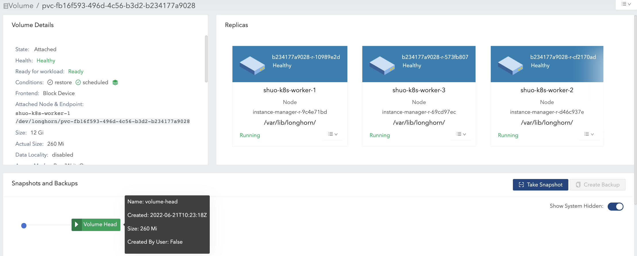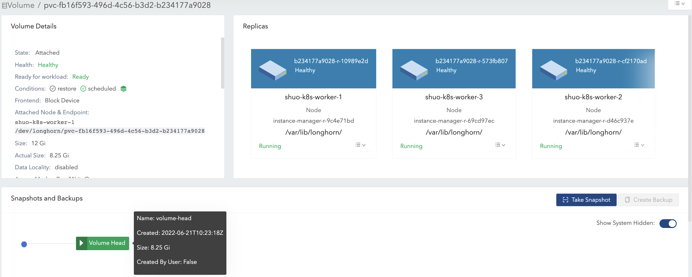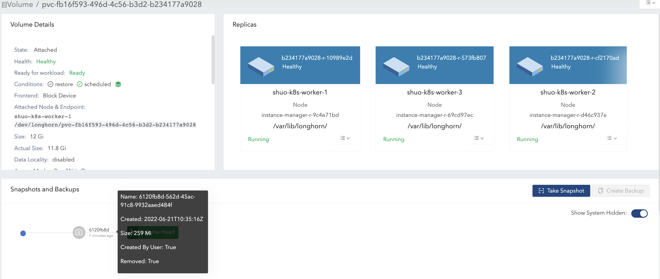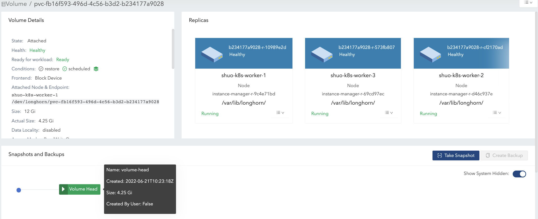 actual sizeis not shrunk after deleting the 4 Gi data. Longhorn is a block-level storage system. Therefore, the deletion in the filesystem only marks the blocks that belong to the deleted file as unused. Currently, Longhorn does not support TRIM/UNMAP operations, so thediscardmount option orfstrimin the filesystem layer cannot reclaim the unused blocks. In consequence, the actual size of Longhorn volumes cannot be shrunk in this case.